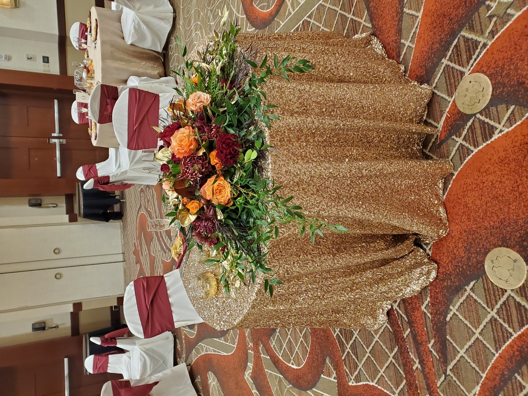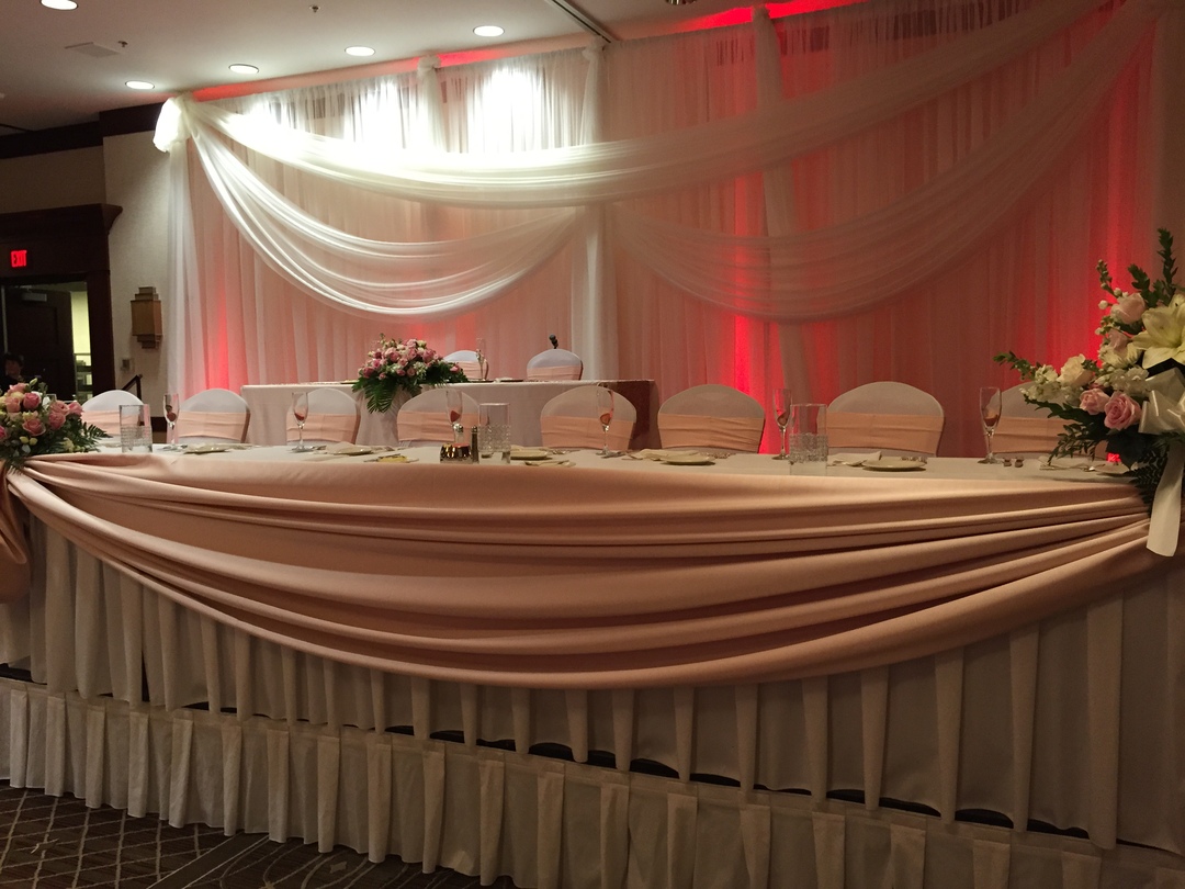 - Skirted gift, punch, guest book, DJ and cake tables