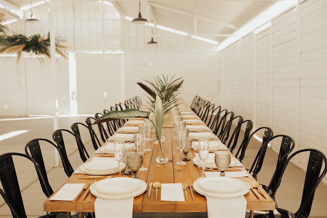 Penny Lane Ranch is a contemporary barn wedding venue located in Sky Valley, California. PLR sits on 5 acres, 3 of which are beautifully landscaped with more than 50 olive trees, 60 palm trees and endless mountain views. Located 25 minutes from downtown Palm Springs. Penny Lane offers a 2,200 sq ft barn with white interiors, 2 bedroom 2 bath house prefab house, 1 bedroom cabin and a salt water pool!