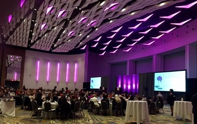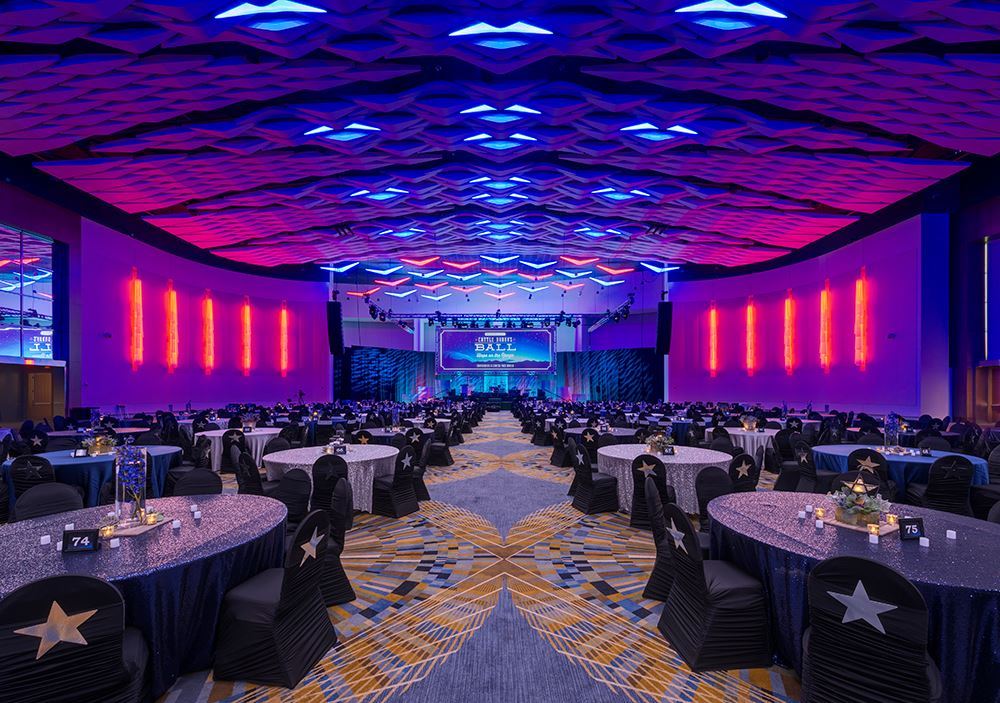 In 2020, The Grand Riverview Ballroom was updated the lighting system with programmable color LED fixtures. Used for banquets, weddings, award ceremonies, dinners, political conventions, media presentations, and myriad other functions, the Huntington Place Grand Riverview Ballroom undoubtedly enhances the events it holds.