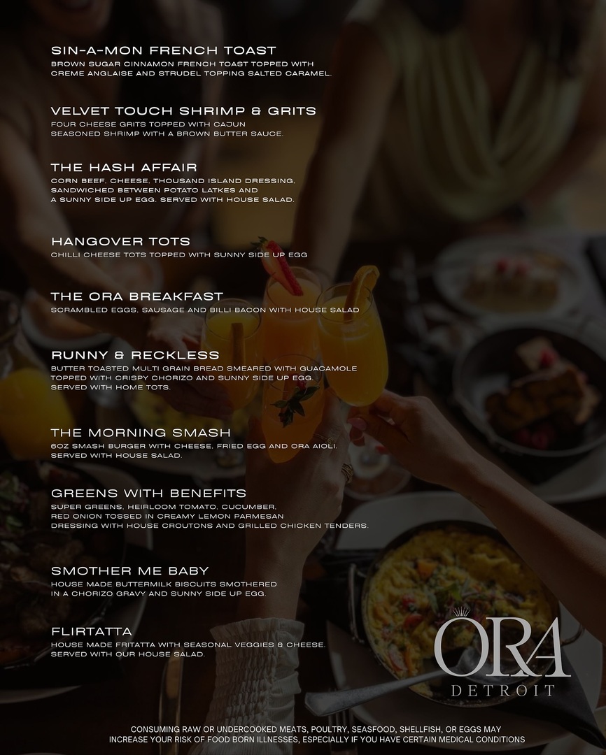 Born in the heart of Detroit, ORA was created to elevate the city’s dining and social culture. We believe in soulful hospitality, globally inspired flavors, and unforgettable evenings filled with good energy, good music, and exceptional food. ORA isn’t just a restaurant — it’s a lifestyle.