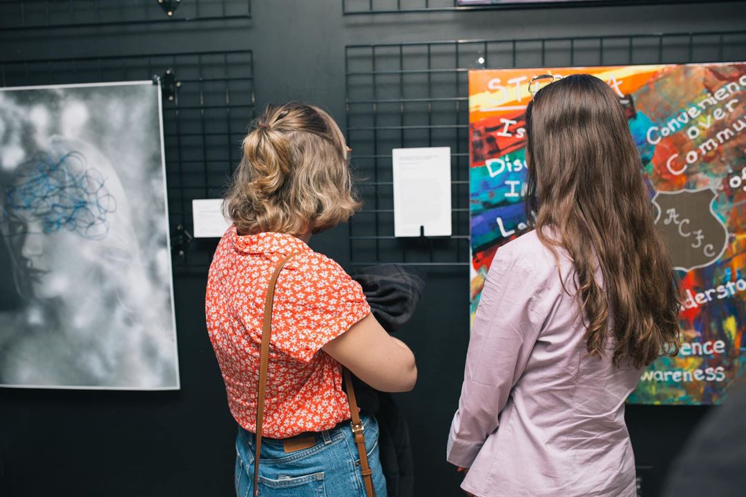 Gallery-style setting with curated artwork
