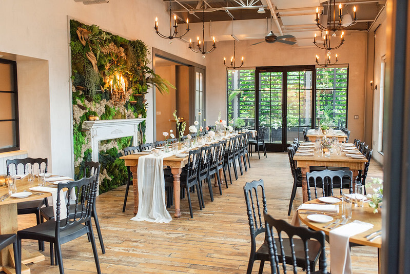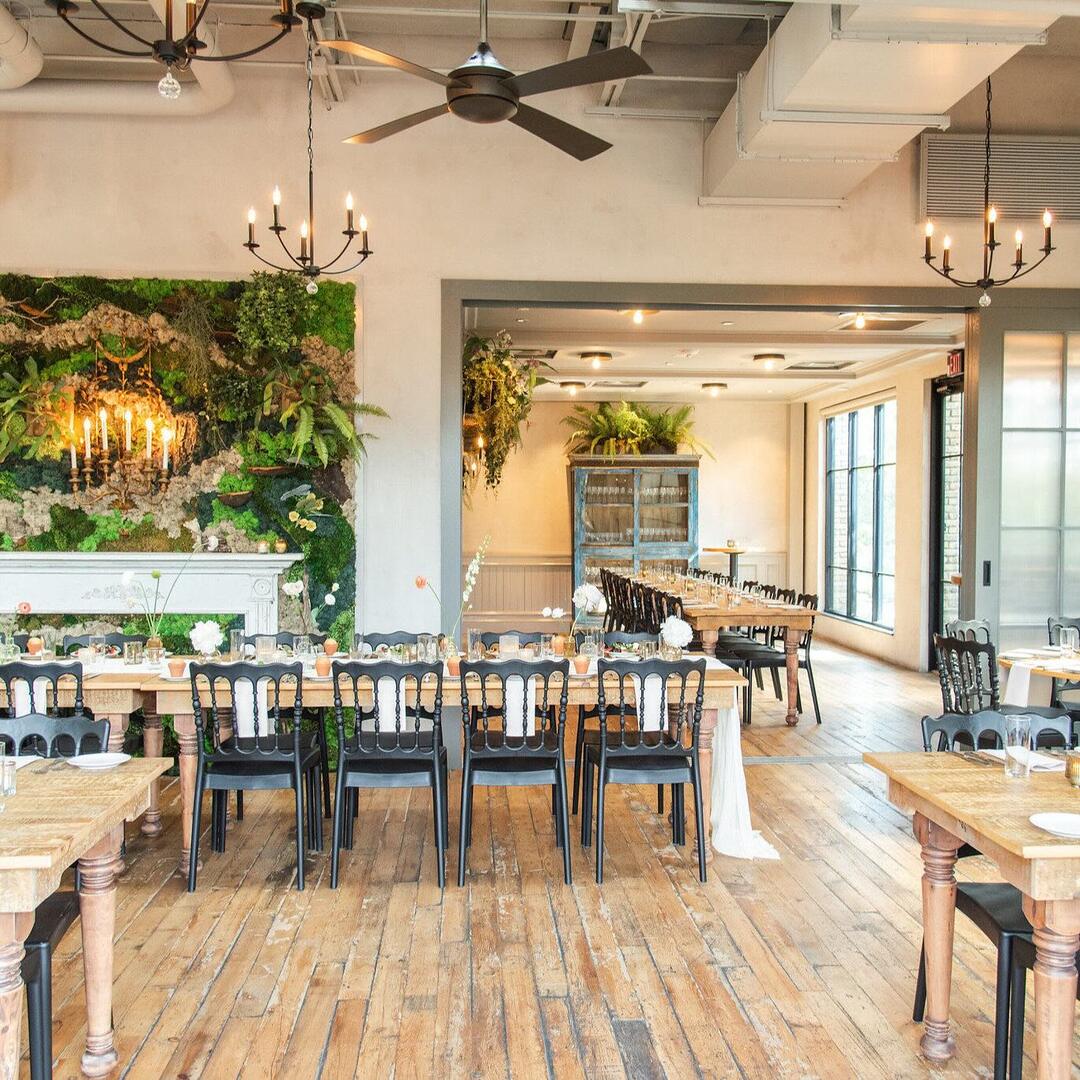 Terrain Gardens beautifully merges indoor and outdoor spaces to create unexpected color and texture combinations resulting in a one-of-a-kind beauty. The venue is adorned with elements like reclaimed barn wood floors, overhead festival lights, and skylights to create a unique aesthetic that’s the first of its kind on the Main Line. The venue offers a lush, horticultural setting with ever-changing greenery that creates a lavish backdrop for special occasions year-round for up to 140 guests. It is situated in the lifestyle complex, Devon Yard, adjacent to the bespoke dining and retail experiences from Pizzeria Vetri, Terrain Cafe, Terrain garden and home, Anthropologie, AnthroWeddings, and Terrain's smaller event space: The Atrium.