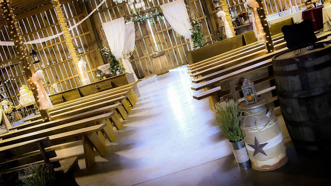 Our 4,000 square foot barn comes completely decorated in rustic elegance. We have several ceremony locations to choose from. So much is included in your package price, such as table linens, wooden centerpieces, chafing dishes, and much more. We can’t wait to offer you a tour and tell you all about it!