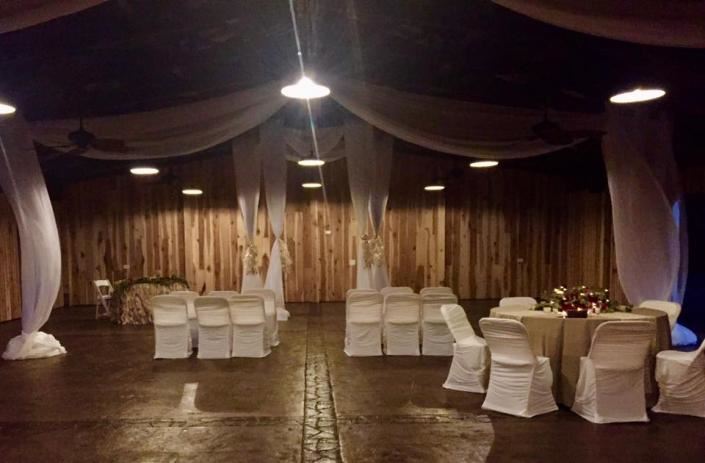 With each Event Rental you get our 6,000 sq. ft. Indoor Venue plus you get our 2,400 sq. ft. Rustic Outdoor Pavilion. The Indoor Venue has a bridal suite, grooms suite, 3 bathrooms, caterer's kitchen, backlit wall, 80-inch screen TV, tables & chairs, custom chandeliers, sound system and much, much more! The back of our building leads to a breezeway connecting to the Outdoor Pavilion! Our Pavilion has a waterfall, sound system, lighting and ceiling fans. We are available for all types of events. Call us today!!