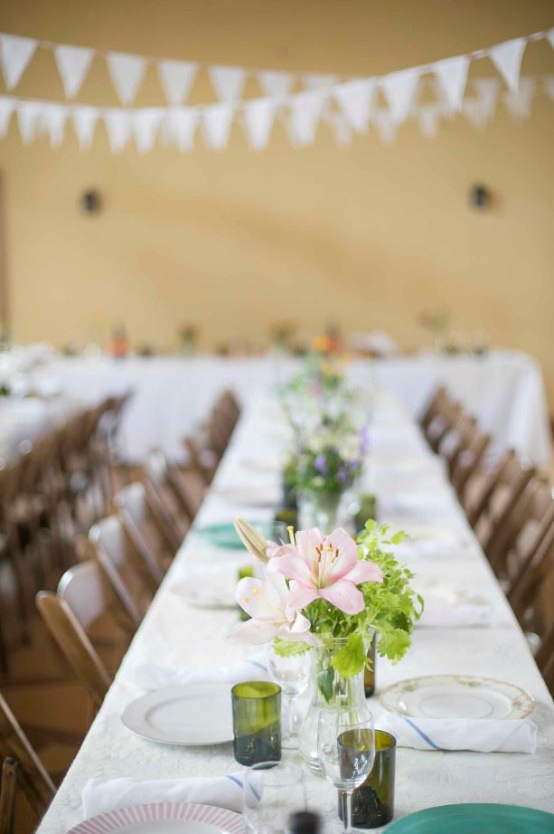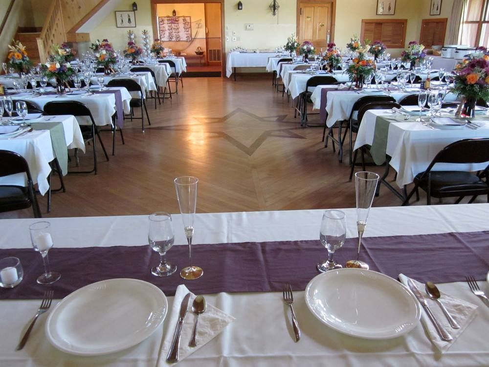 Our main venue, Farwell Hall, is designed with the exterior characteristics of a country barn. Inside, the gorgeous 1,500 square-foot main hall hosts a maple dance floor with an inlaid walnut Moravian star in the center of the room. The hall also features a vaulted ceiling with hand-forged, wrought-iron chandeliers.