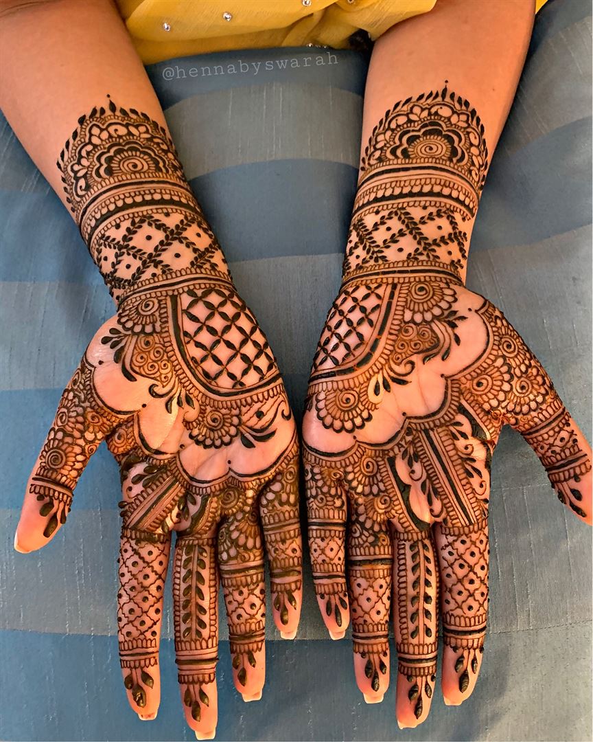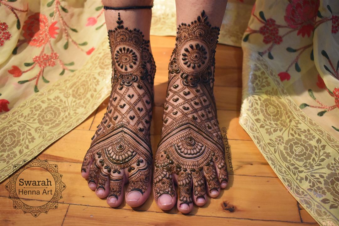To get bold colors, Swarah uses premium quality henna paste. She is an expert in drawing intricate patterns and designs. From custom designs to traditional favorites, and unique styles, Swarah can draw a wide variety of designs. All you need to do is make an inquiry!
