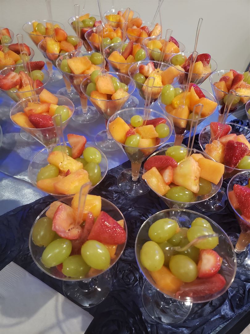 Basic (Choose 3 items): Barbeque or Swedish meatballs, pasta salads, assorted cheese, fruit or veggie platters, chicken tenders, chicken salad sandwiches, ham/turkey & cheese sliders, artichoke/spinach dip, rotel dip, etc. Cost: $13 per person. Upgrade (Choose 5 items): Barbeque or Swedish meatballs, pasta salads, assorted cheese, fruit or veggie platters, chicken tender bites or tenders, Shrimp & Grits, Sliders, Chicken Wings, Chicken Tenders, chicken salad, buffalo chicken dip, artichoke/spinach dip, Pasta Salad, Shrimp cocktail, Shrimp deviled eggs, deviled eggs, spring rolls, small chacuterie board, etc. Cost: $16+ per person