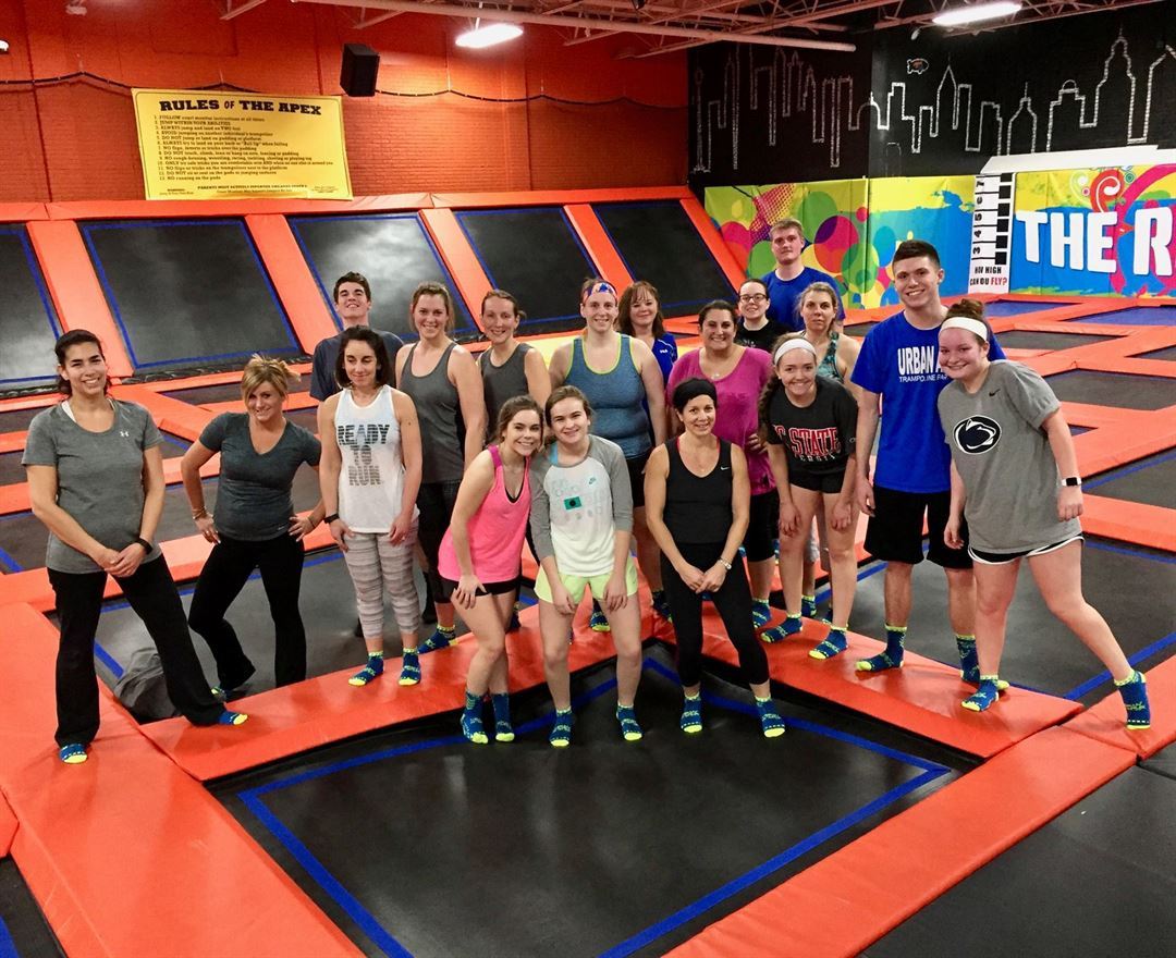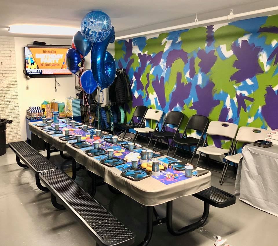 We have indoor adventure park with party rooms, cafe, picnic tables, 75 trampolines including dodge ball arenas and jump pit, warrior obstacle course, as well as large "tubes" course for 9-year-old and under. Can accommodate any group size. Full facility rental is available.