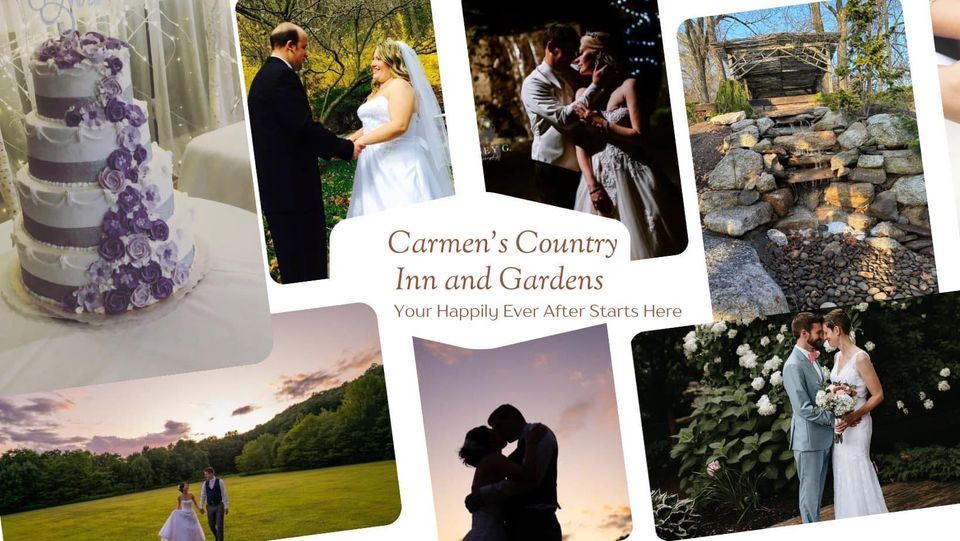 Entertain guests and enjoy cocktails at our outdoor bar and grill or hold al fresco wedding receptions at the pavilion. Our venue provides a romantic turn-of-the-century backdrop reminiscent of charming English manors, surrounded by lush woodlands, towering trees, and serene mountain views.formal evening or an intimate, casual gathering, Country Inn and Gardens makes it easy to comfortably accommodate all your family and friends in one stylish setting. Designed with several outdoor ceremony spaces, each space, features natural details and elegant touches, such as stone fountains, and courtyards. Equipped with a spacious banquet hall, this space also features ample room to wed, dine, and celebrate into the evening. If you are searching for a cozy outdoor space for your wedding day, allow Carmen’s Country Inn and Garden to make your dreams a reality.Ideal for the perfect, &;Rustic Country Wedding,&;the grounds are wildflower beautiful with fountains and plenty space for outdoor service, and the inside of the venue is Reminiscent of the Romantic Great Gatsby, with tin and copper ceiling and tiffany and beveled glass everywhere Our site is the perfect venue for a destination wedding in the Pocono mountains of Penna. Rooted in the heart of Pennsylvania on Freedom Road, Carmen’s Country Inn and Garden lies within the rural community of Drums and offers blissful couples a sensual and secluded setting to host a remarkable wedding and reception. Located southwest of Scranton on 14 private acres of woodland, this venue is an ideal choice for brides and grooms seeking a natural space to tie the knot. Imagine saying ‘I do’ surrounded by all your loved ones beneath a lush canopy and towering trees. Whether you are planning a grand, formal evening or an intimate, casual gathering, Country Inn and Gardens makes it easy to comfortably accommodate all your family and friends in one stylish setting. Designed with several outdoor ceremony spaces, each space, features natural details and elegant touches, such as stone fountains, and courtyards. Equipped with a spacious banquet hall, this space also features ample room to wed, dine, and celebrate into the evening. If you are searching for a cozy outdoor space for your wedding day, allow Carmen’s Country Inn and Garden to make your dreams a reality.