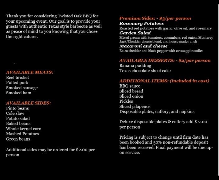 We cater any type of event up to 250 people. Our commitment to quality and customer service are what set us apart. Give us a call or send us an email. We look forward to making your catering experience the best.