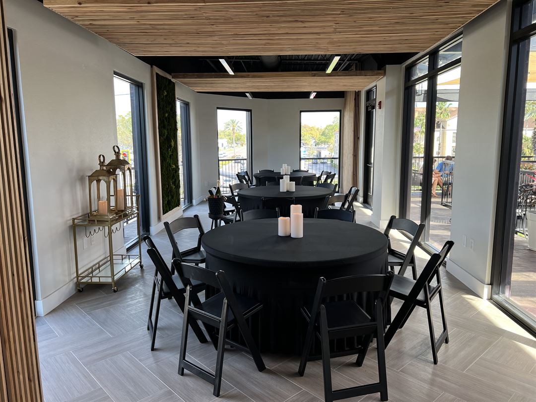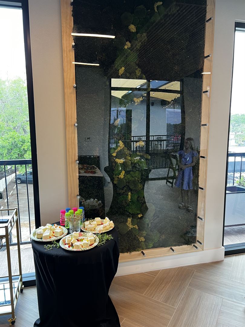 Upscale Event Space with floor to ceiling windows, natural wood elements and preserved moss walls. Nature elements go with every theme.