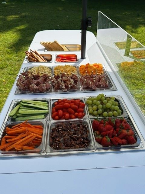 We believe that every gathering deserves to be elevated with the finest quality cheese, cured meats and accoutrements. Whether you're hosting an intimate soiree, a corporate event, wedding or a grand celebration, our meticulously curated charcuterie cart is designed to impress and delight. Let us bring our vision to your event. "Elevating the charcuterie experience".