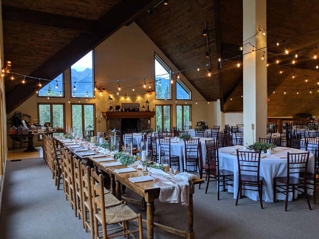 For weddings, we can provide you two stunning outdoor wedding venues (in a meadow or in front of the pond, surrounded by magnificent mountains, aspen tress and wildflowers) and a lovely indoor reception facility that features windows looking out on Engineer and Needles mountains. During the winter months, our indoor facility also provides a lovely backdrop for indoor ceremonies.