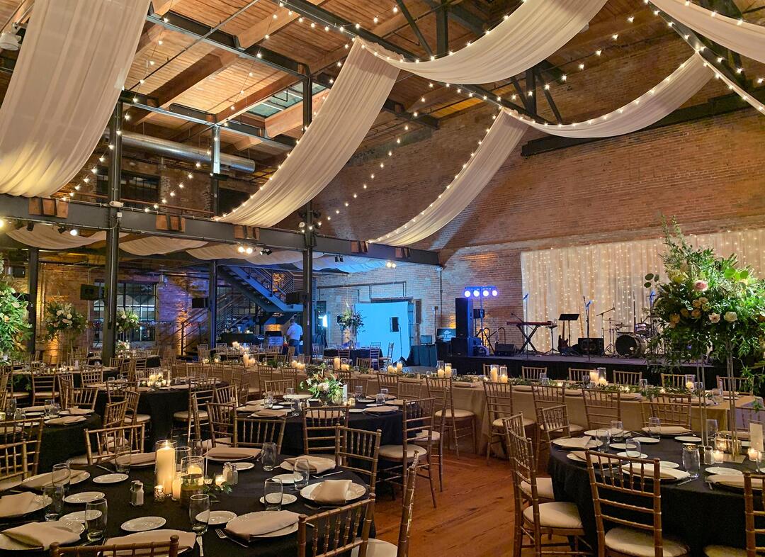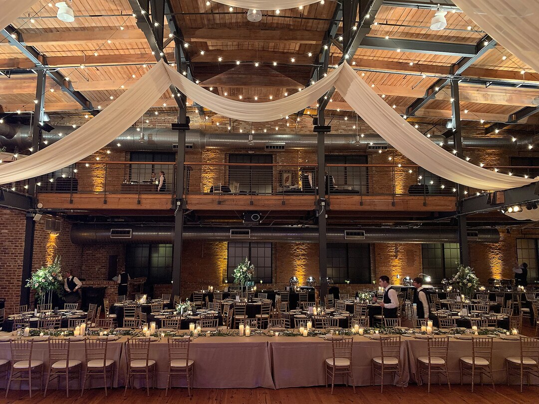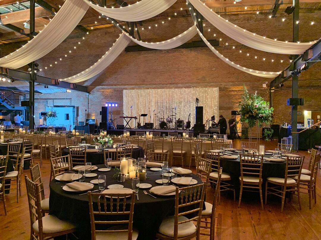 Bay 7 can accommodate from 70-400 people in 10,000 square feet of urban chic setting within a registered historic site, complete with exposed brick walls, hardwood floors and steel girders. Guests enjoy the delicious food and award-winning hospitality of The Angus Barn and Executive Chef Scott James. All inclusive wedding options from ceremony to reception with dining choices including station, plated, cocktail style service and a full range on in-house amenities with tables & decor, chairs, linen, china, hi-fi audio visual equipment, staging and service. Bay 7 is also the perfect spot for holiday parties, corporate events, fund raisers or most any type of event.