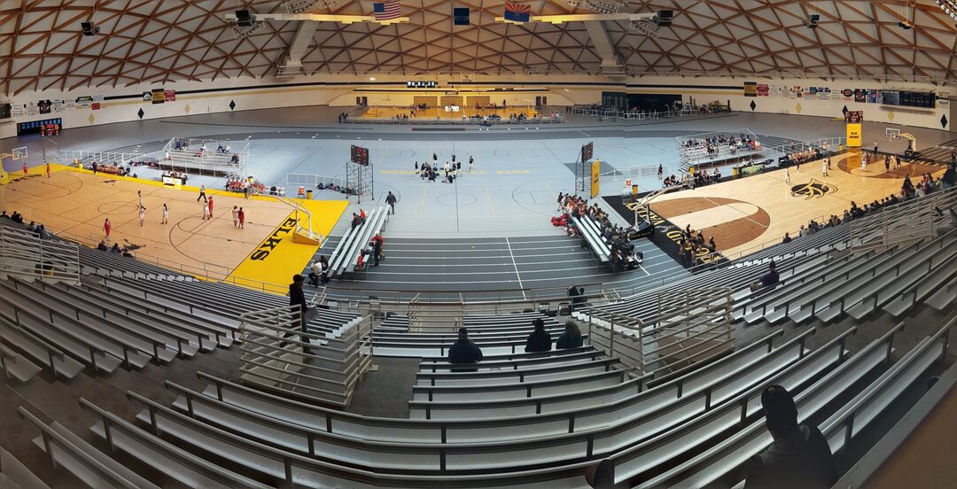 The Round Valley Dome is he first fully day lighted dome of its kind, letting not only light but also heat enter the 8,000,000(eight million) cubic feet of space. Acoustically, the shell ceiling absorbs 90 percent of sound creating clarity of voice announcements and musical performances. The Dome's field level, with its many configurations and varying floor surfaces, provides for a great number of athletic activities. The Dome provides a field area of 113,000 square feet for football, a six- lane, 200-meter track with 110-meter straightaway, long and high jumps, pole vault and six basketball courts, seven volleyball courts, or any combination there of.