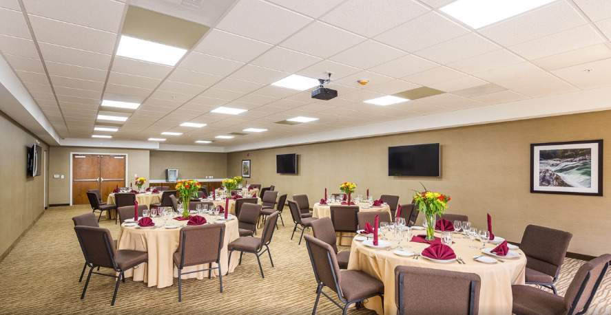Planning a gathering with friends, family or colleagues? Book your event here in our 1200-square-foot Piedmont room, where our team can configure the room to several different layouts, including reception, theatre, conference, U-shape, banquet and classroom. For business meetings, use of the business center with printing services is especially helpful.