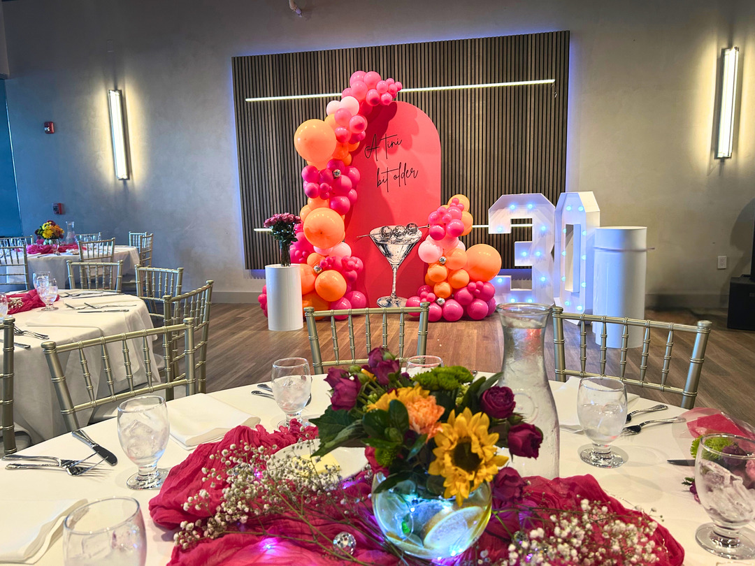 Simple & modern, yet elegant, our Event Room is the perfect place for any occasion! We are a full-service event space, providing tables, chairs, linens, food & staff. Please contact us for more info, room rental information, and to inquire about custom packages.