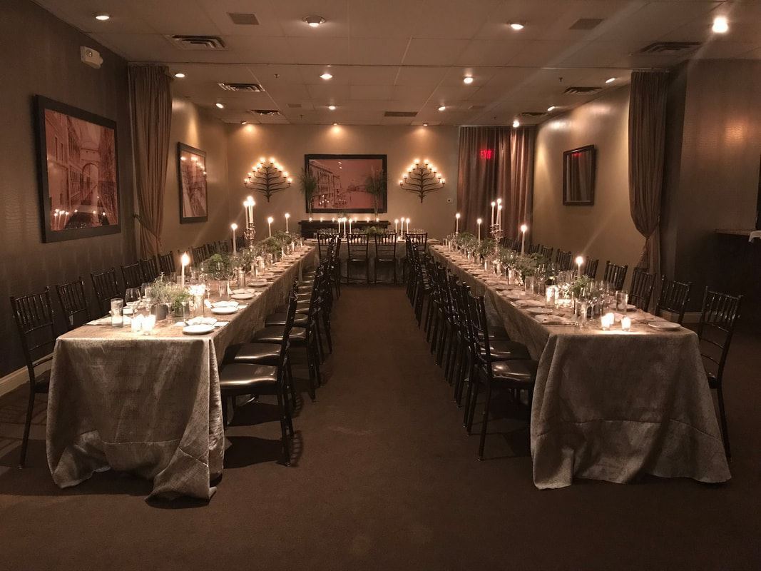 Our event space offers a spacious setting perfect for luncheons, corporate meetings or special occasions. Tables can be configured in any way to accommodate the event. Our space holds up to 75 seated and 100 for a cocktail event and has a full service bar separate from the restaurant bar.
