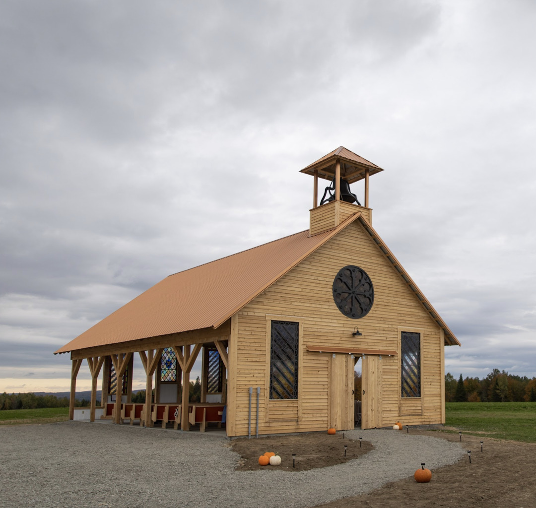 The River de Chute Chapel is a wedding chapel located in the countryside of Northern Maine that offers convenience in a remote setting. This outdoor venue connects you and your guests with nature on all sides. The splendor of the stained glass elevates the beauty of the happy couple. Have access to the whole property and stay in the historic Mahany House. The best part is ringing the bell on your special day and listening to it echo across the valley.
