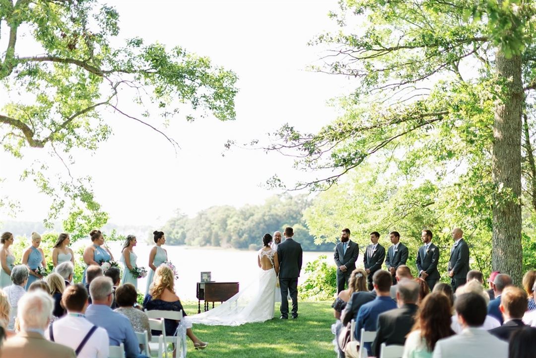 Elkington sits on 25 acres of land with about 15 acres of usable yard space. The yard is bordered on three sides by the Gulph Creek that empties into the Chesapeake Bay, which gives you endless options of waterfront views for your ceremony and reception.