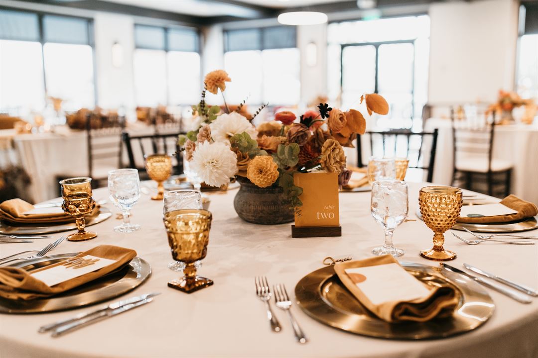 Your reception at Olympic Hills boasts a beautifully remodeled banquet space with dark, hard wood floors. Grand windows throughout offer a stunning view of the 18th green and ceremony site while natural light pours strikingly into the space. A newly designed deck wraps around the entirety of the room, with a charming fireplace creating the perfect ambiance for you and your guests (accommodating up to 200).