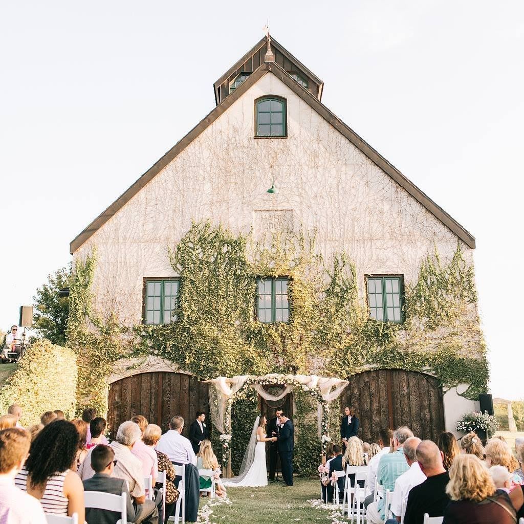 Our venue is a replica of a 400-year-old German stone barn in Bavaria Germany. The four-story building has intricate vaulted ceilings, spiral staircases, wrought iron railings and accents, and a cupola at the top made completely of windows. It sits on 450 acres with lakes, forests, wheat fields, tree farms, orchards and an aviary.