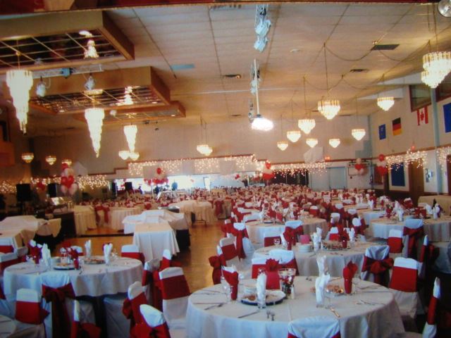 German Canadian Cultural Centre has banquet facilities for groups of 25 to 400 people. Our Main Ballroom is 5.400 square feet and can seat up to 400 people.