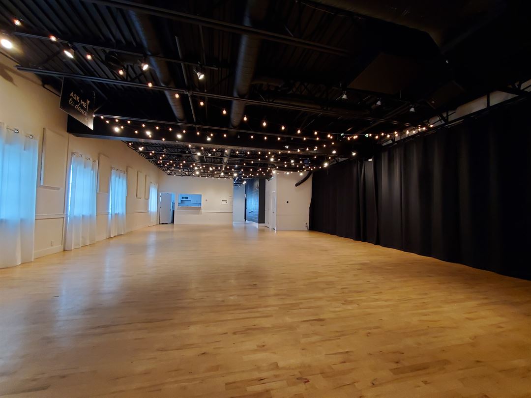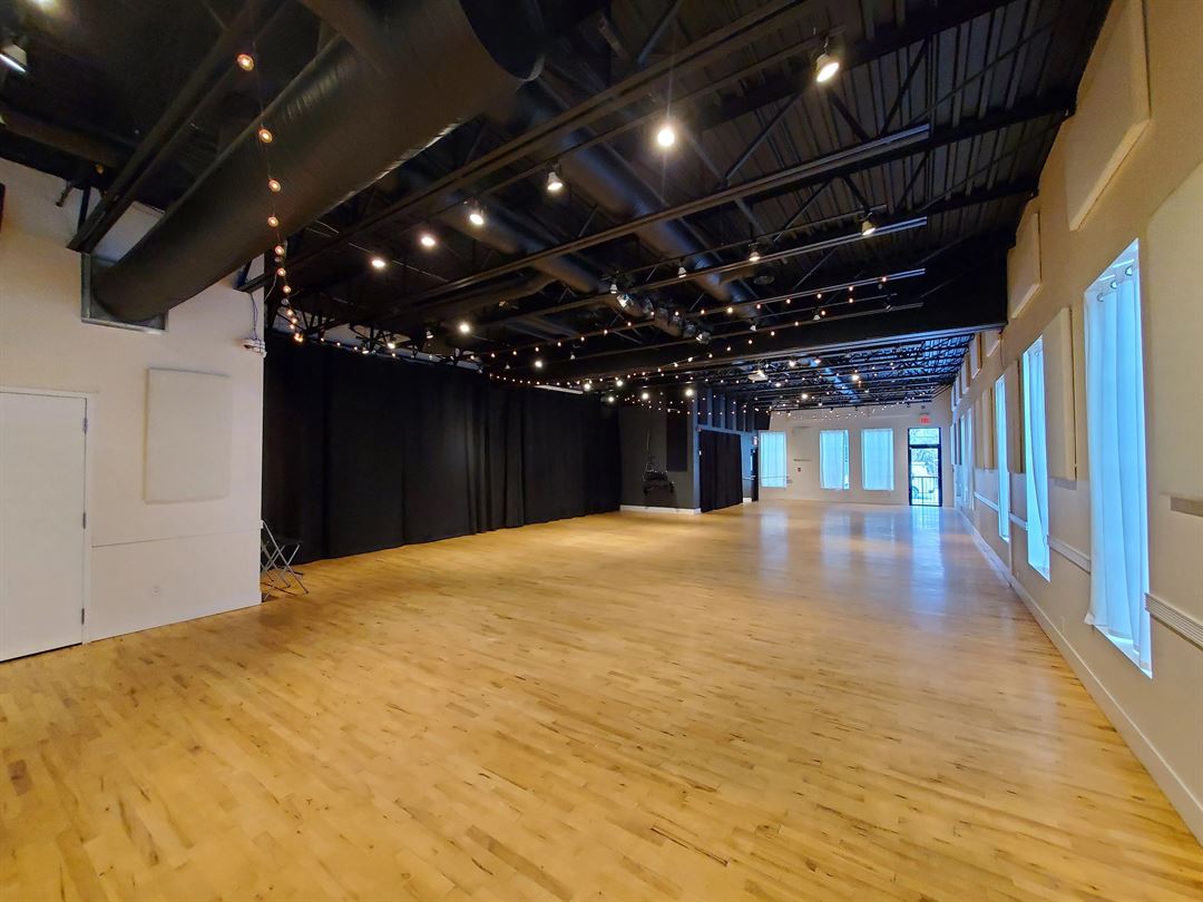 On weekends, the space is ideal for evening receptions, day rentals, wedding parties, concerts, dance workshops, theater performances, and church services. During the week, the venue is best suited for dance classes, band and performing rehearsals. Behind the our curtains, each hall is fully mirrored and is further divisible by a soundblocking moveable wall, which will allow up to 4 studios for use for artists during the week!