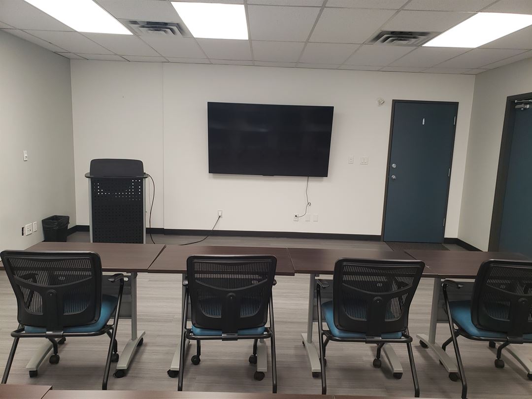 Meeting space/ board room available for rent in Edmonton. The room size is 19.5×35 (feet). 20 seated with tables, 30 if table are not required.