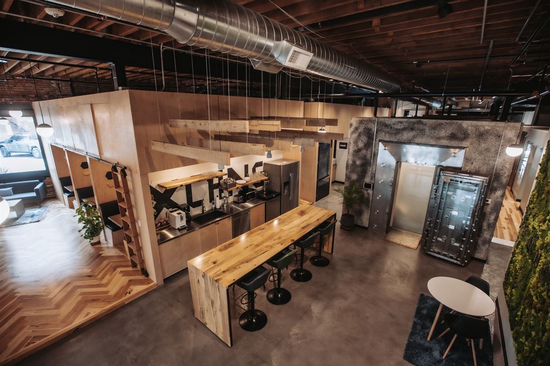 Located in historic downtown Effingham in a renovated old bank. We are a coworking space during the day and rent modern luxurious loft apartments on Airbnb and VRBO upstairs. On weekends we double as an intimate event space. Our modern industrial look makes for a great background for your baby or bridal shower.