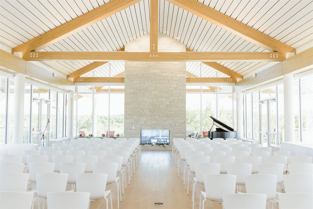 A place to read, create and celebrate the Donald and Carol Kress Pavilion is located in the heart of Egg Harbor and home to the Village Library and Community Center. The building was completed in early 2018 and features a second floor Great Hall event space with wrap-around porches that offer sweeping views of the bay and surrounding orchards. In addition to the modern, customizable Great Hall space, visitors have access to two meeting spaces, a lounge and living room with a fireplace.