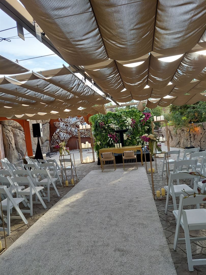El Paso Zoo features event spaces that accommodate up to 350 guests. We offer several venue locations, including the event pavilion. The pavilion is a 5,162 square foot event space that features custom decorative chandeliers and an amazing view of the zebras. This space is ideal for cocktail receptions and other formal events. The deck area allows you and your guests to enjoy an outdoor ambiance with face-to-face zebra encounters, providing a fun and memorable animal experience. El Paso Zoo provides an energetic, inspiring, and exotic setting for your unique wedding or special event.