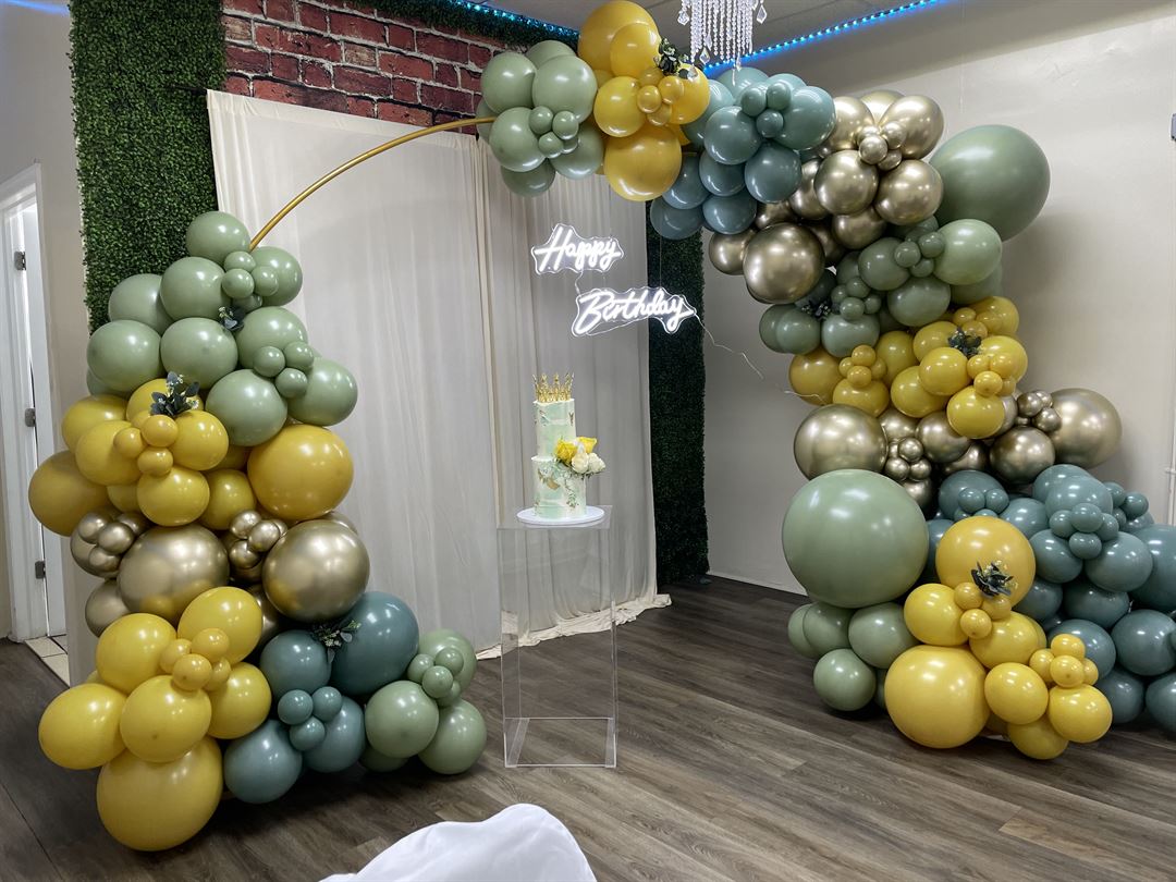 We provide you with tables, chairs, Bluetooth surround system for music, LED Color Uplighting, Wifi, Grass Wall, & Dry Kitchenette & more for your event!