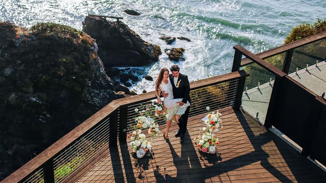 Perched on a cliff overlooking the scenic California coast, Sacred Rock Inn is the perfect setting for your intimate wedding on the Mendocino Coast. Say "I do" outdoors on our stunning deck overlooking the Pacific Ocean combined with a wedding lunch or dinner, as well as customizable options for rehearsal dinners, welcome receptions, post-wedding day "send-off" brunches, and other coordinated activities such as "morning of" yoga classes.