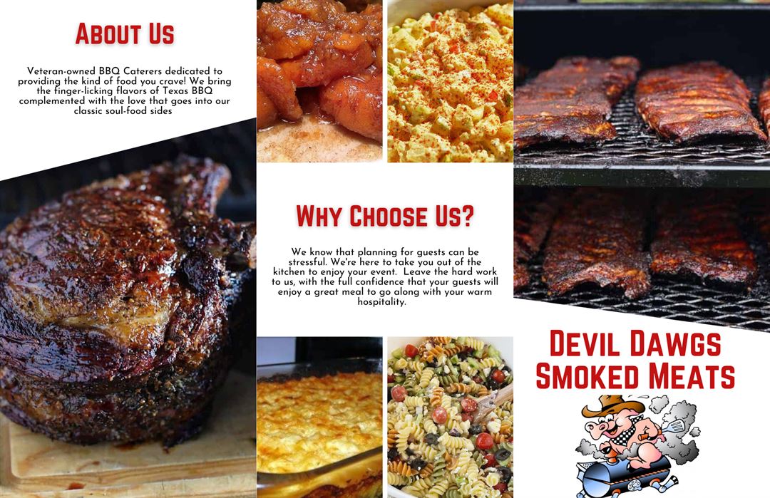 Two Marines dedicated to serving up great food just for you. Our business is new, but we are not new to it. I have been at this for over 30 years and her experience is just as long. We look forward to showing you what we're all about. So, give us a call for your special event, wedding, office feast or your weekend hangout. You won't be disappointed.