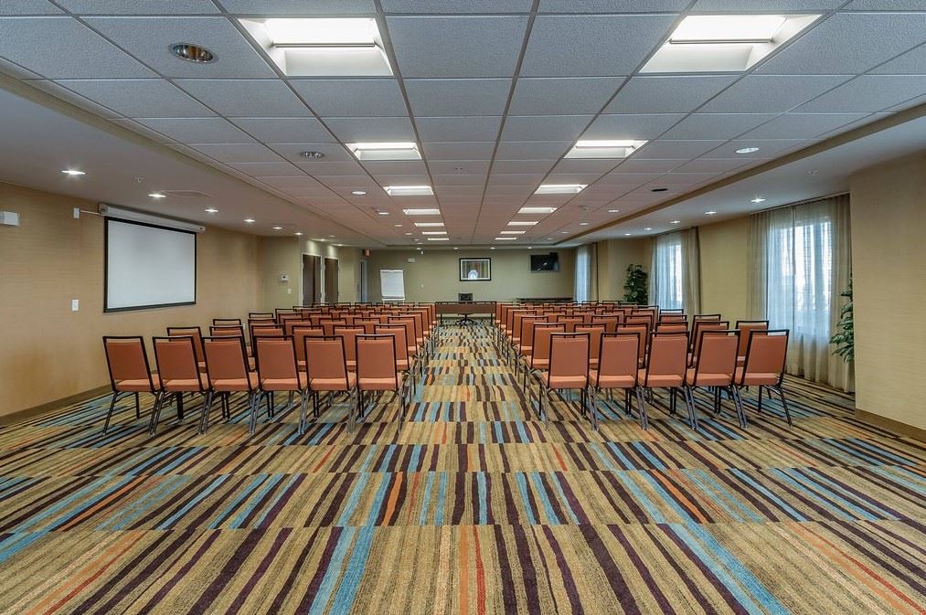 Host your next gathering at the Fairfield Inn & Suites Elkhart! We have two meeting spaces available. Our conference room has an executive table with 8 seats around it. Have more people? We can easily slide the executive table to the side and set the room up for other options. Our Banquet Room is 1850 sq ft and can seat up to 125 people comfortably depending on the setup. Coffee, water, juice, pop, and small treats are available to add on!
