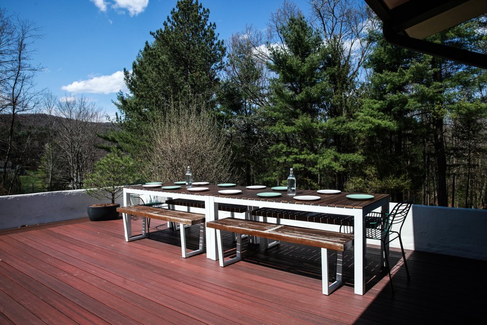 The Mod House is the coolest small wedding venue. Explore our non-traditional wedding venue in the Hudson Valley. Nestled 90 minutes north of Manhattan, within the verdant embrace of the Catskills, there lies a place both stunning and full of cinematic intrigue —The Mod House. The house sprawls across more than three acres of secluded, wooded land—a private, well-appointed haven for creative retreats and intimate weddings.