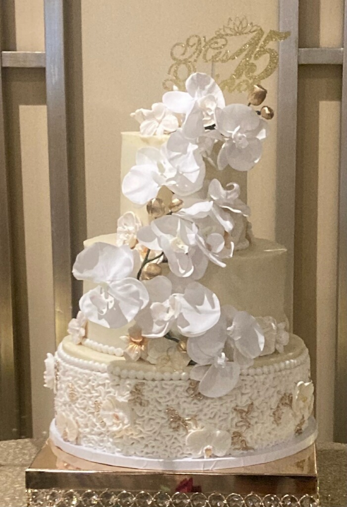 Our wedding cakes are custom orders and range from 6" cakes for intimate events to multi-tiered cakes for larger parties. We do not offer sheet cakes and "dummy cakes"