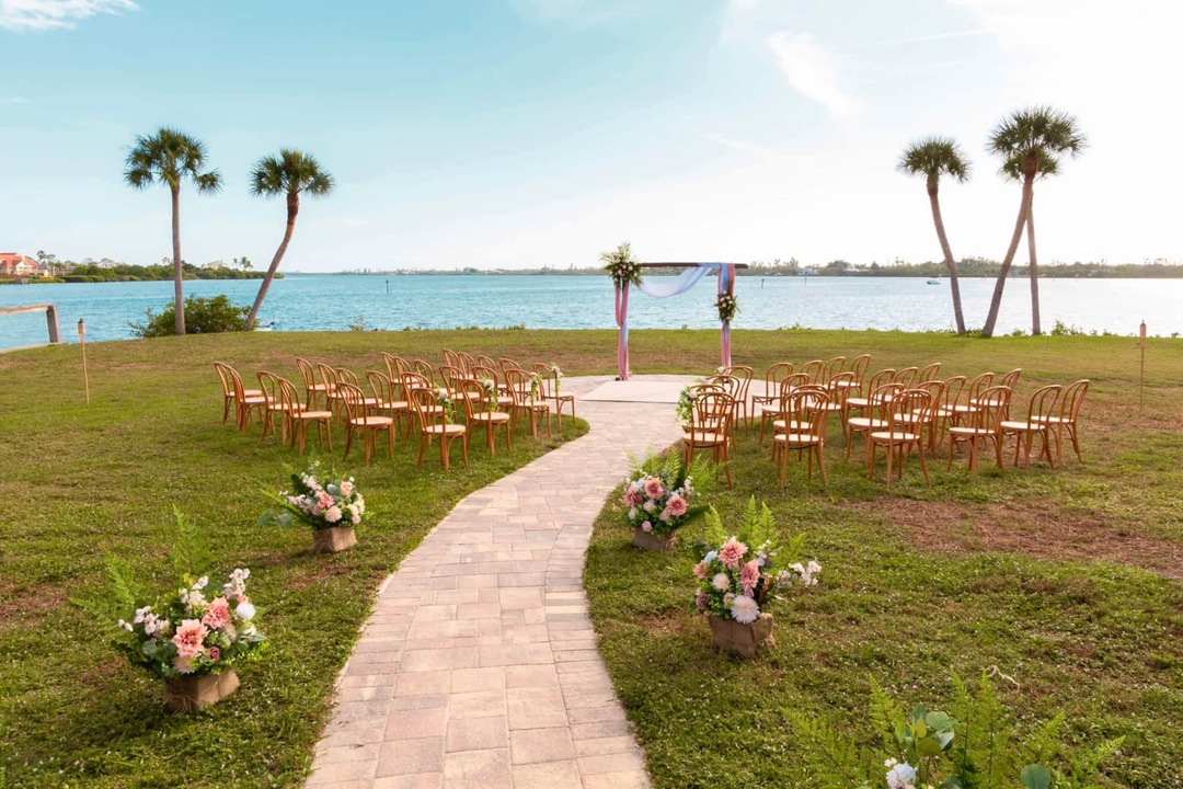 Welcome to our enchanting waterfront wedding estate, set on a private 2.5-acre oasis in the heart of a charming coastal town. Overlooking Lemon Bay and the Gulf of Mexico, this serene and romantic property provides a breathtaking backdrop for weddings and vow renewals of all sizes.