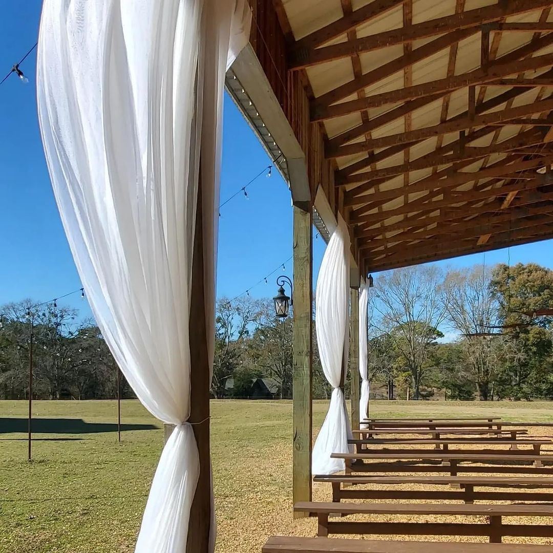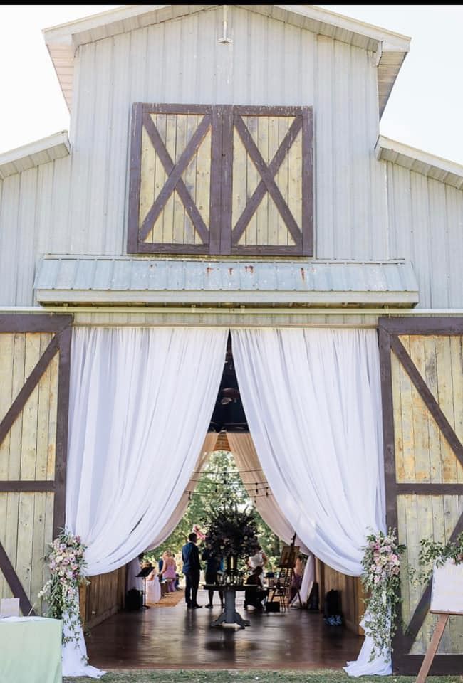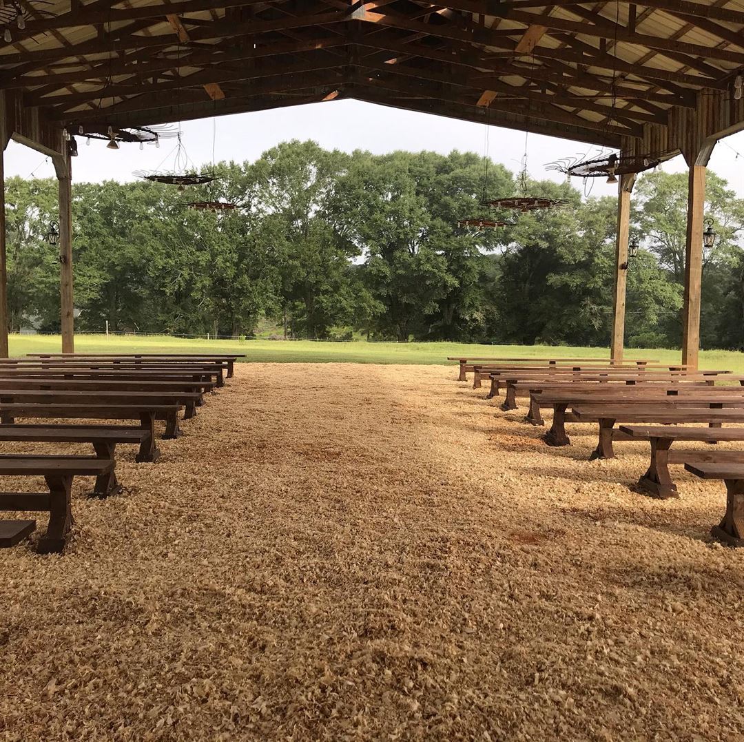 Dalrymple Farms is dedicated to providing the perfect backdrop for your wedding or special event! Located in Enterprise, AL, Dalrymple Farms is an event venue that has the capacity to host up to 300 guests while offering beautiful scenery. We offer our perfectly rusted siding and beautifully stained wood barn doors, as well as a wide variety of amenities to make your wedding run as smoothly as possible. Enjoy a wide open space for a ceremony area and our dressing room for getting ready. Our reception venue is handicapped accessible and is the perfect space to host large events.