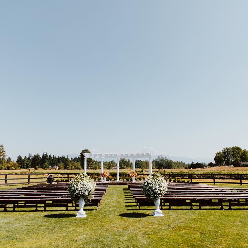 Grandview Estate is a rustic wedding venue located in rural Enumclaw, Washington. Surrounded by 10 acres of beautiful land, giving you that perfect country feel. Offering you an outdoor ceremony space with a spectacular view of Mt. Rainier facing directly behind the altar, a tent for the reception, and space inside the barn that can be used for whatever you wish. We find it to be perfect for dancing, games, gifts, photo booth, or even an area for dessert. With endless opportunities to roam the property and capture photos of the spectacular views, we know that you will enjoy every minute of your time spent at Grandview Estate!