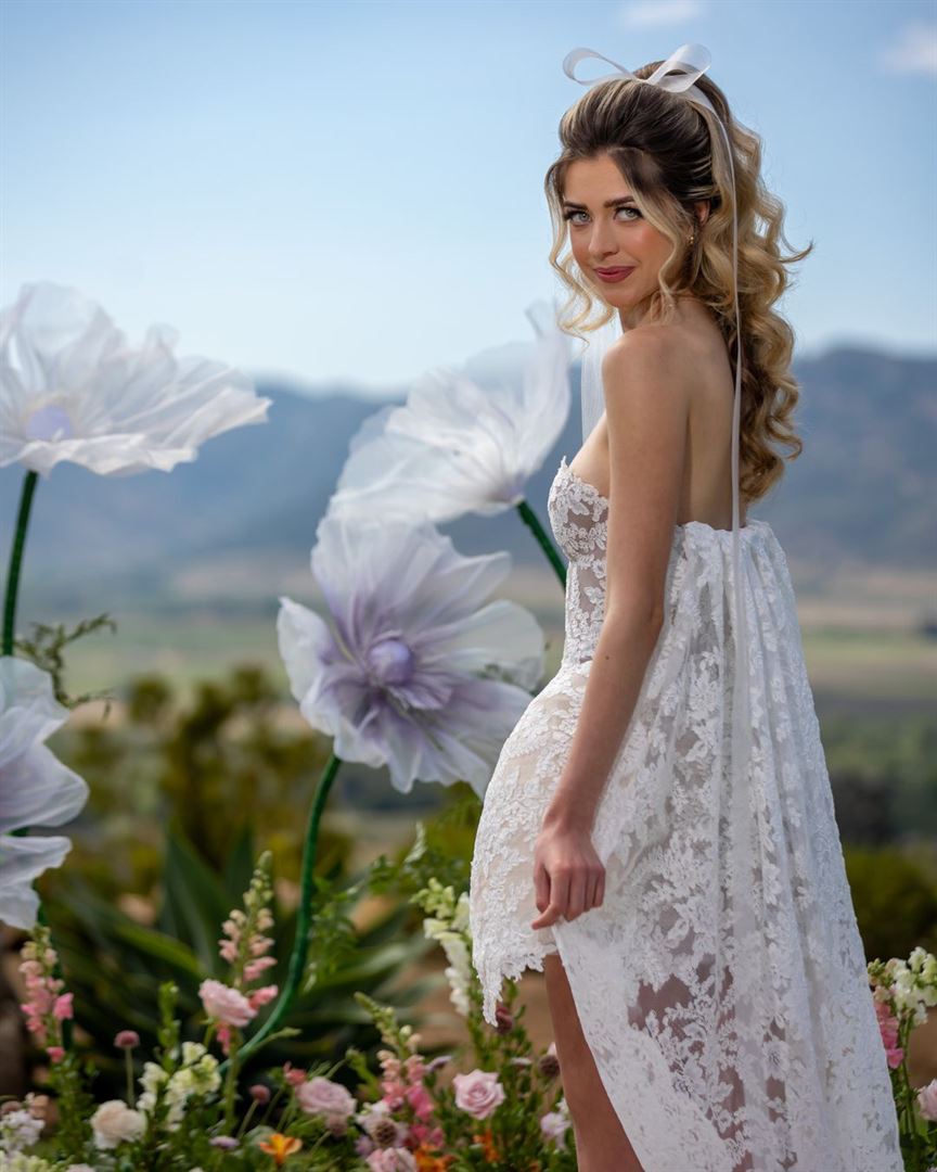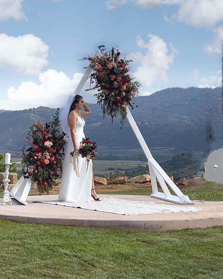 Private outdoor Wedding & Events Studio + Boutique Flower Farm, with Ceremony & Reception open lush grassy lawn surrounded by an array of flowers, overlooking the beautiful San Pasqual Valley in Escondido, California.