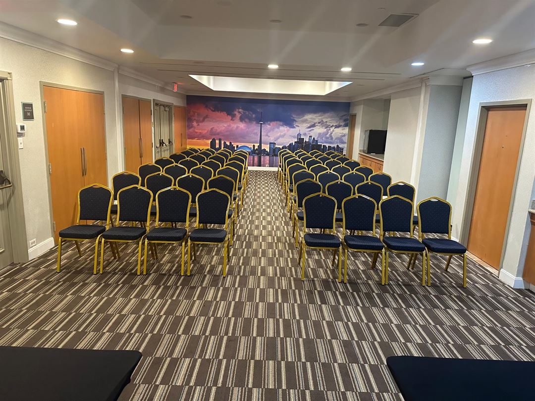 Best Western Premier Toronto Airport Carlingview Hotel offers two spacious meeting rooms ideal for events of all kinds. The larger room accommodates up to 100 guests, while the smaller room is perfect for up to 60. Both spaces feature complimentary large screens, with additional equipment available for rent to enhance your event.