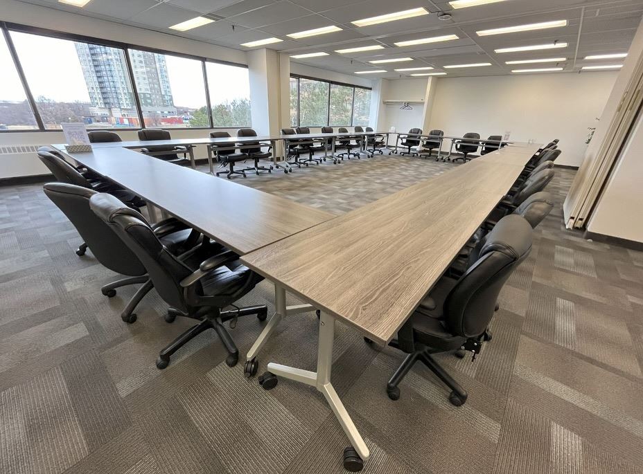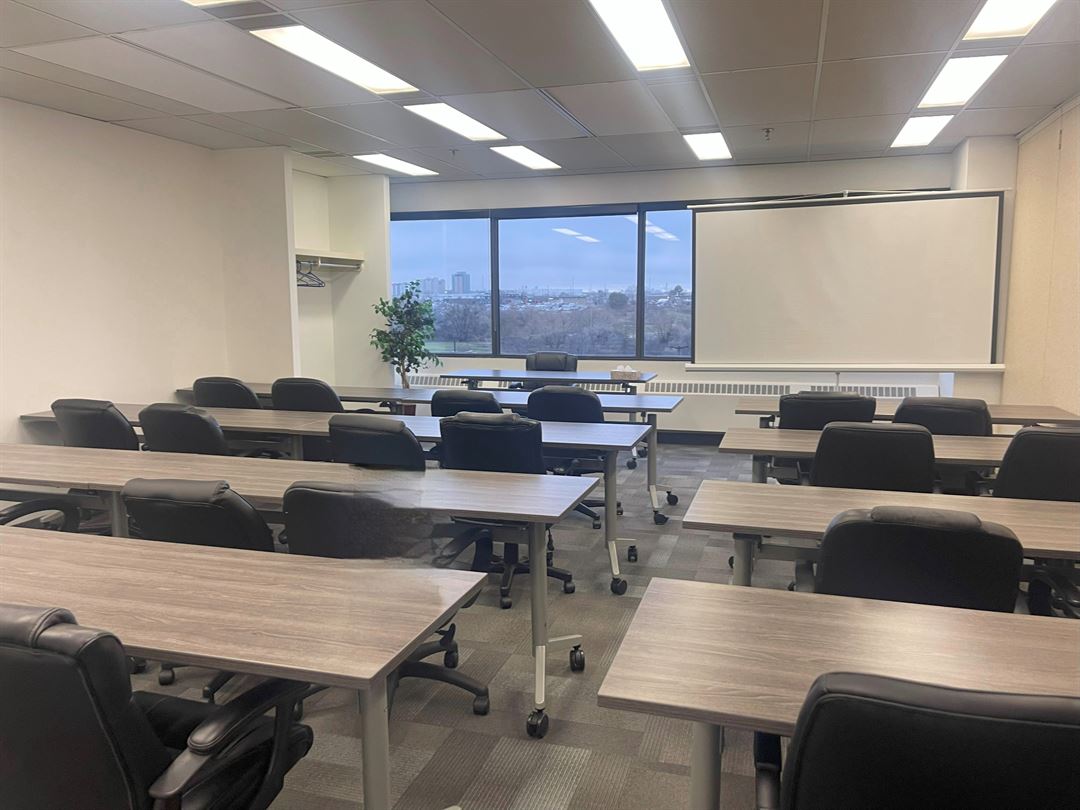 When you book with us, you'll have access to all the necessary AV/technical equipment, including projectors with screens. Additionally, we provide Wi-Fi, complimentary printing (up to 150 pages), whiteboards, flip charts, and onsite complimentary parking validation through a QR code. Your booking also comes with a full package of refreshments at no extra cost, such as coffee, tea, beverages, snacks, morning muffins, bagels, oatmeal, and granola bars. We offer upfront pricing with no hidden gratuity or administrative fees.