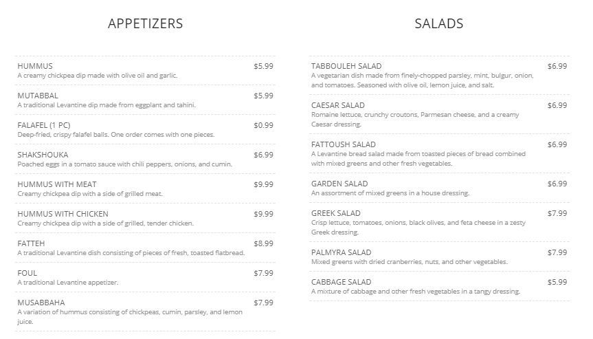 Whether you need a quick bite or want to enjoy a nice meal, alone or with a group of people, whether you tried this cuisine before or not, or for Catering, stop by Palmyra to experience a perfect combination of delicious food,fresh juice & Smoothies, and a wide variety of our Tradittional Middle eastern Pita Manakeesh.