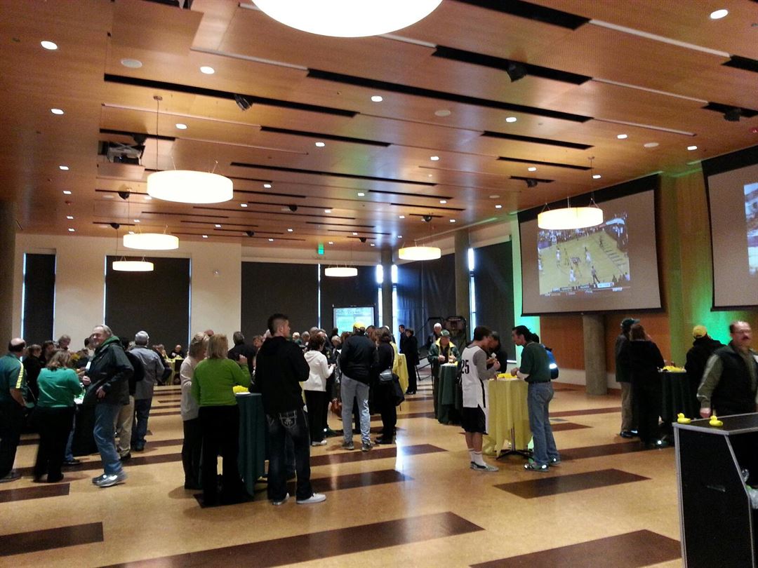 The bold, innovative and environmentally sensitive Ford Alumni Center is the premiere destination in Lane County for your next meeting or special event. The modern facility includes a large ballroom, a variety of conference rooms, an airy atrium with fireplace, an outdoor courtyard & lawn, and a tech-intensive lobby interpretive center.