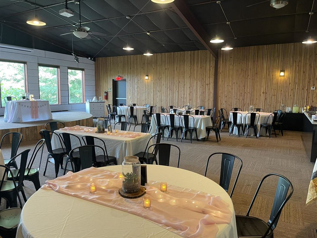 Locally-owned and operated, our amazing facility at 150 Passion Play Road can seat up to 150 people for a variety of events. We are located just 5 minutes from downtown in a beautiful, wooded setting.