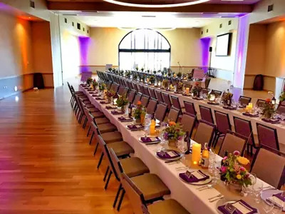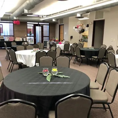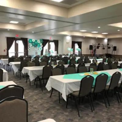 The Banquet Hall at the Evans Community Complex can be utilizes as one large space or divided into 2 smaller spaces. The Banquet Hall has a dance floor area and outside patio area. Rental of the full Banquet Hall is required for events held on Saturdays in the months of May through September.