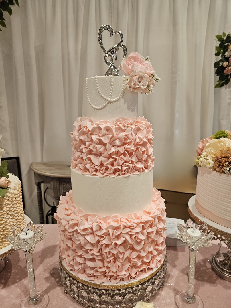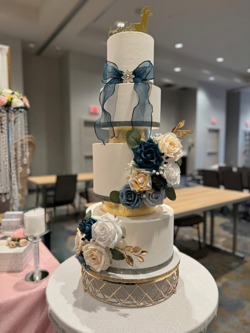 We offer two-tier and three-tier wedding cakes, floral designs, and custom cake creations for bridal showers, engagement parties, and rehearsal dinners. Every cake is made with high-quality ingredients, attention to detail, and personalized service to ensure your day is perfect.