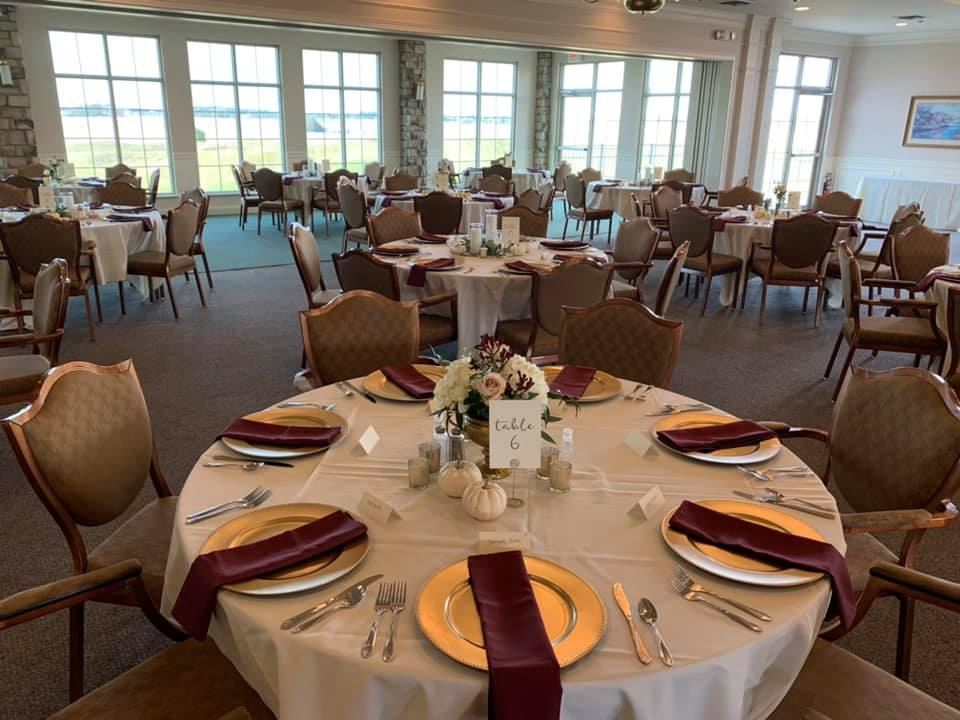 The recently expanded Cambridge Banquet room now holds up to 350 or more people. The room features spectacular views of the 18th Hole at Cambridge Golf Course. This elegant room is perfect for your special day.